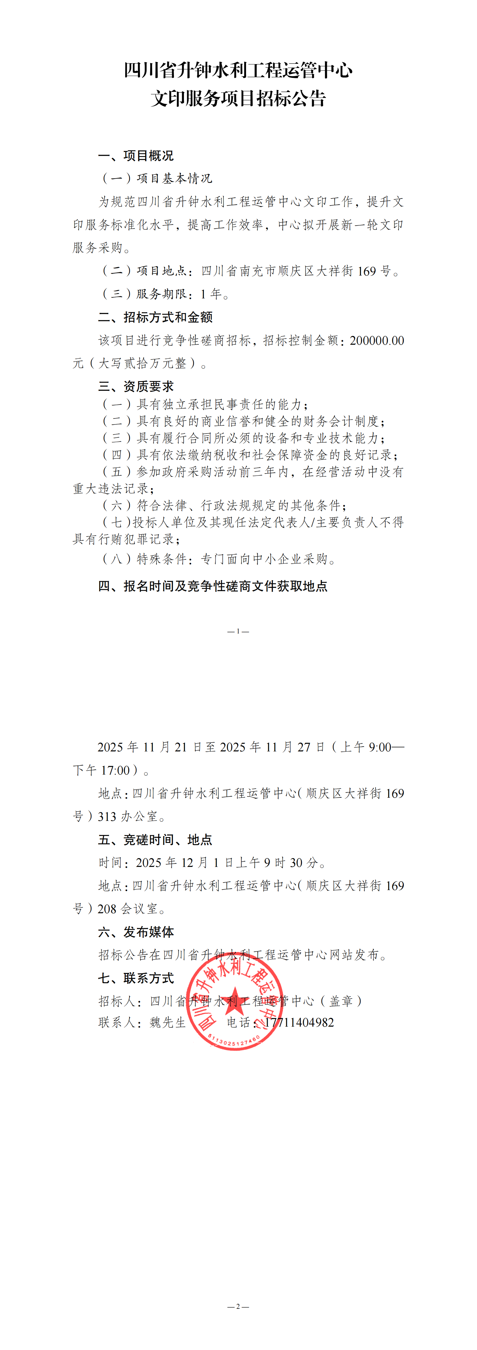 四川省升钟水利工程运管中心房屋竞租结果公示