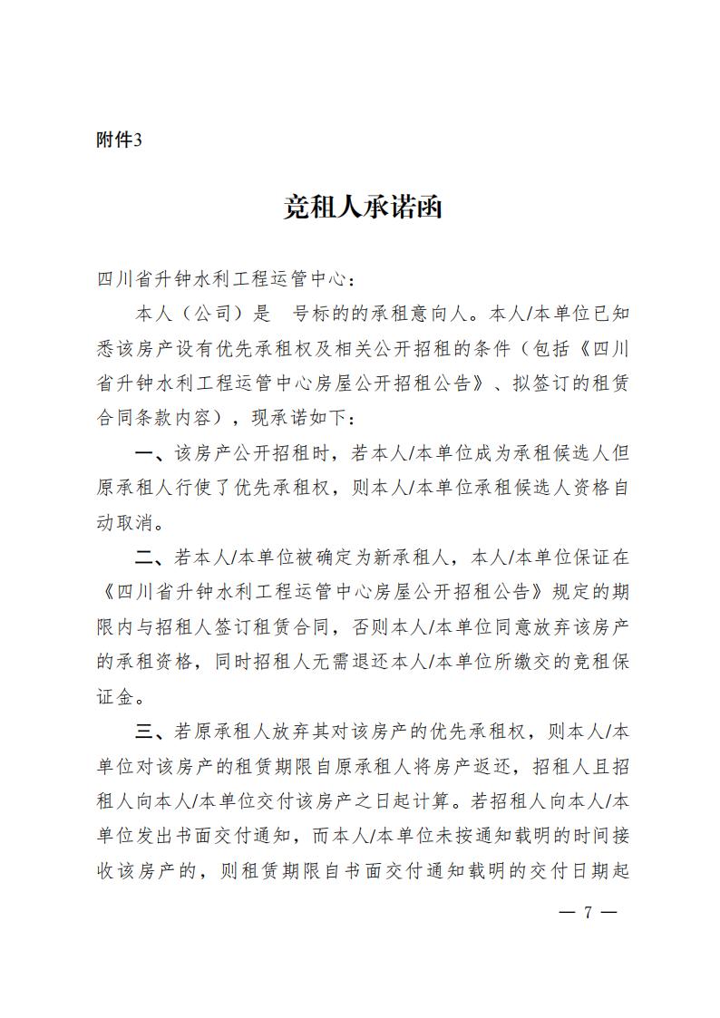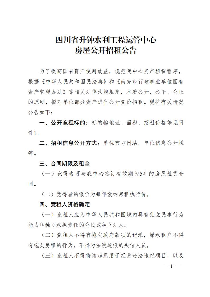 四川省升钟水利工程运管中心房屋公开招租公告