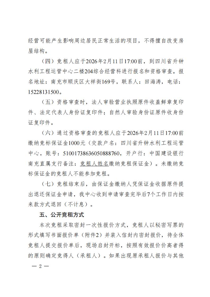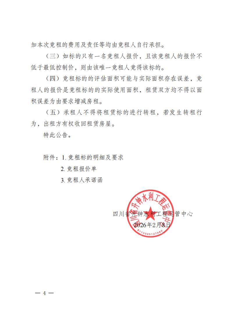 四川省升钟水利工程运管中心房屋竞租结果公示