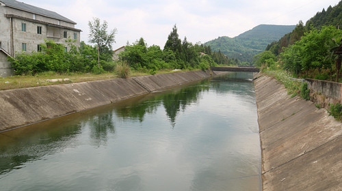 升钟水库右总干渠正在进行春灌放水