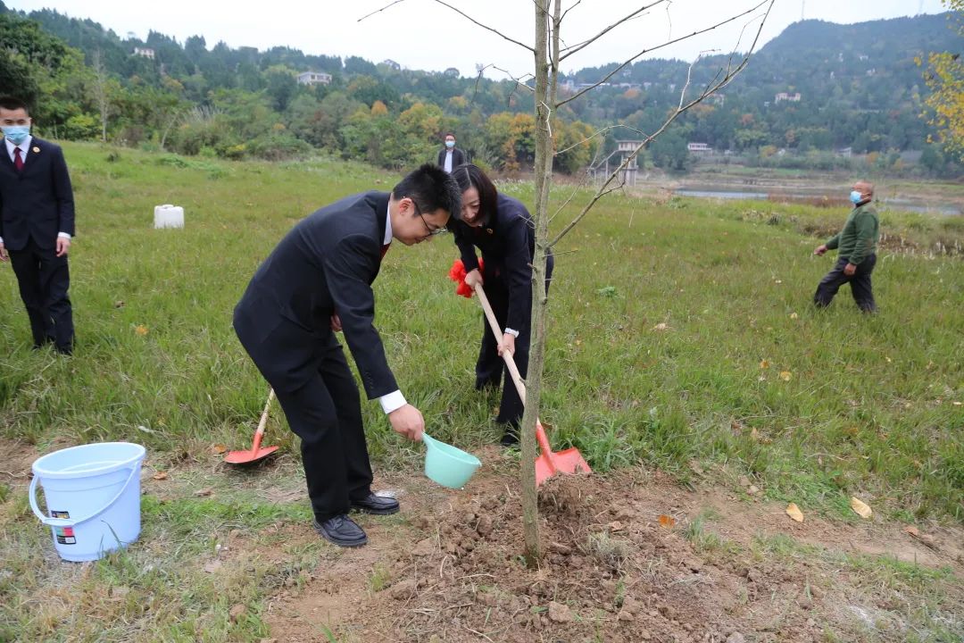 揭牌仪式结束后,参加活动的领导及相关人员在生态司法修复基地开展了植树活动。