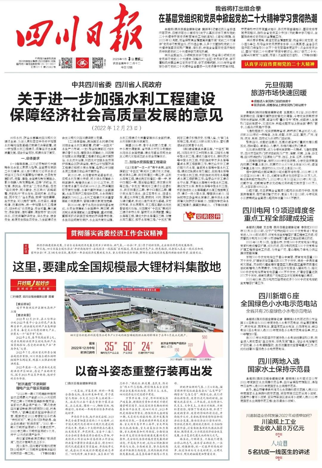 中共四川省委 四川省人民政府 关于进一步加强水利工程建设 保障经济社会高质量发展的意见 (2022年12月23日)